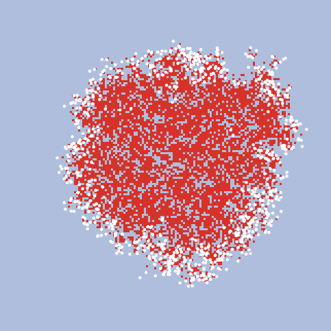 Light blue squares represent untriggered mousetraps. Red squares represent triggered mousetraps.