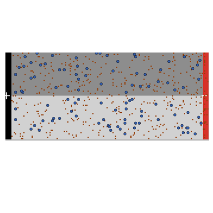 Besides the representation of resistance, there are two other notable approximations in the models. First, the atoms are placed randomly inside the wire. That is, for the same model parameters, every time you press setup, a new configuration of atoms will result. This may result in slightly different values of electric current for the same settings.