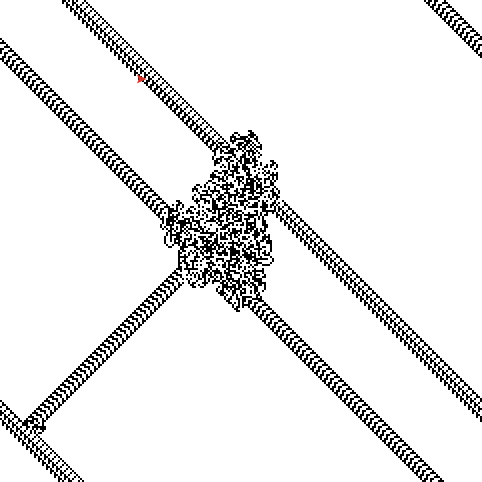 This is a basic virtual ant ("vant") model. It shows how extremely simple deterministic rule can result in very complex-seeming behavior. It also demonstrates the concept of time reversibility and shows that time reversibility is not incompatible with complex behavior.