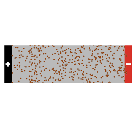 This model is based on Drude's free electron theory. The wire in this model (gray patches region) is composed of atoms, which in turn are made of negatively charged electrons and positively charged nuclei. These nuceli are hidden from view in this model for simplicity, but are displayed in the subsequent NIELS models (Current in a Wire, Series Circuit and Parallel Circuit).