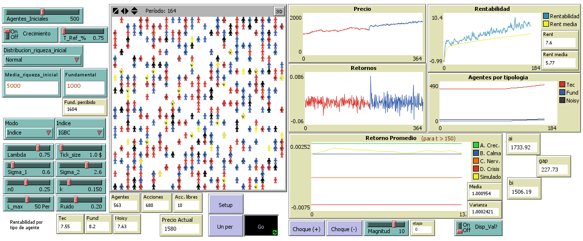 If you want to use this model, you have to quote the author: Gil, Alvaro. Artificial Stock Market. Pontificia Universidad Javeriana (Colombia) 2012. alvaro.gil@polymtl.ca