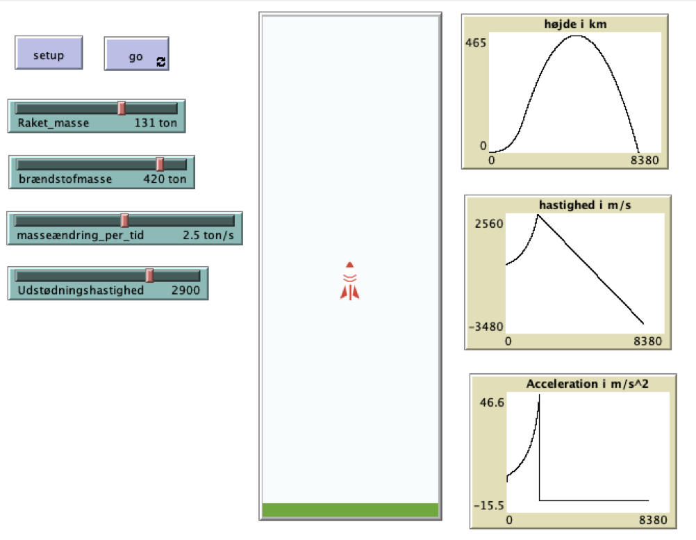 It calculates the thrust of the rocket, with inputs of the exhaustion velocity (udstødningshastighed in Danish) and the change of mass per second. Also the mass of the rocket and the